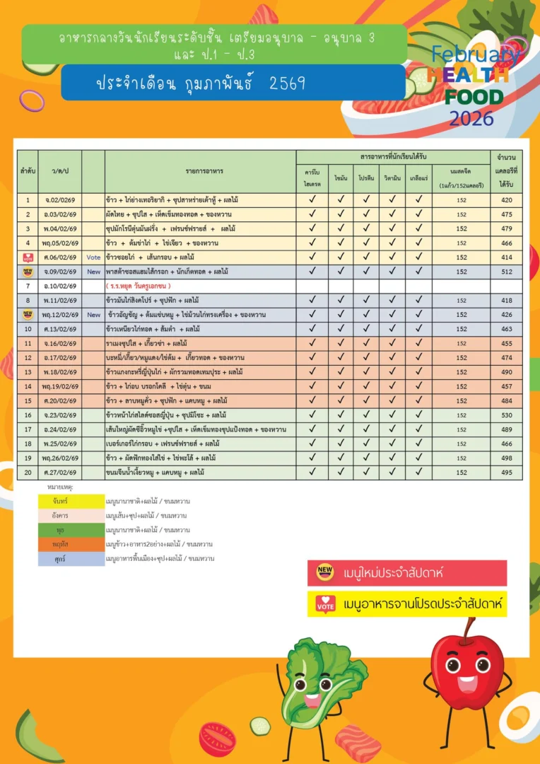 เมนูอาหารเดือนกุมภาพันธ์ 2569