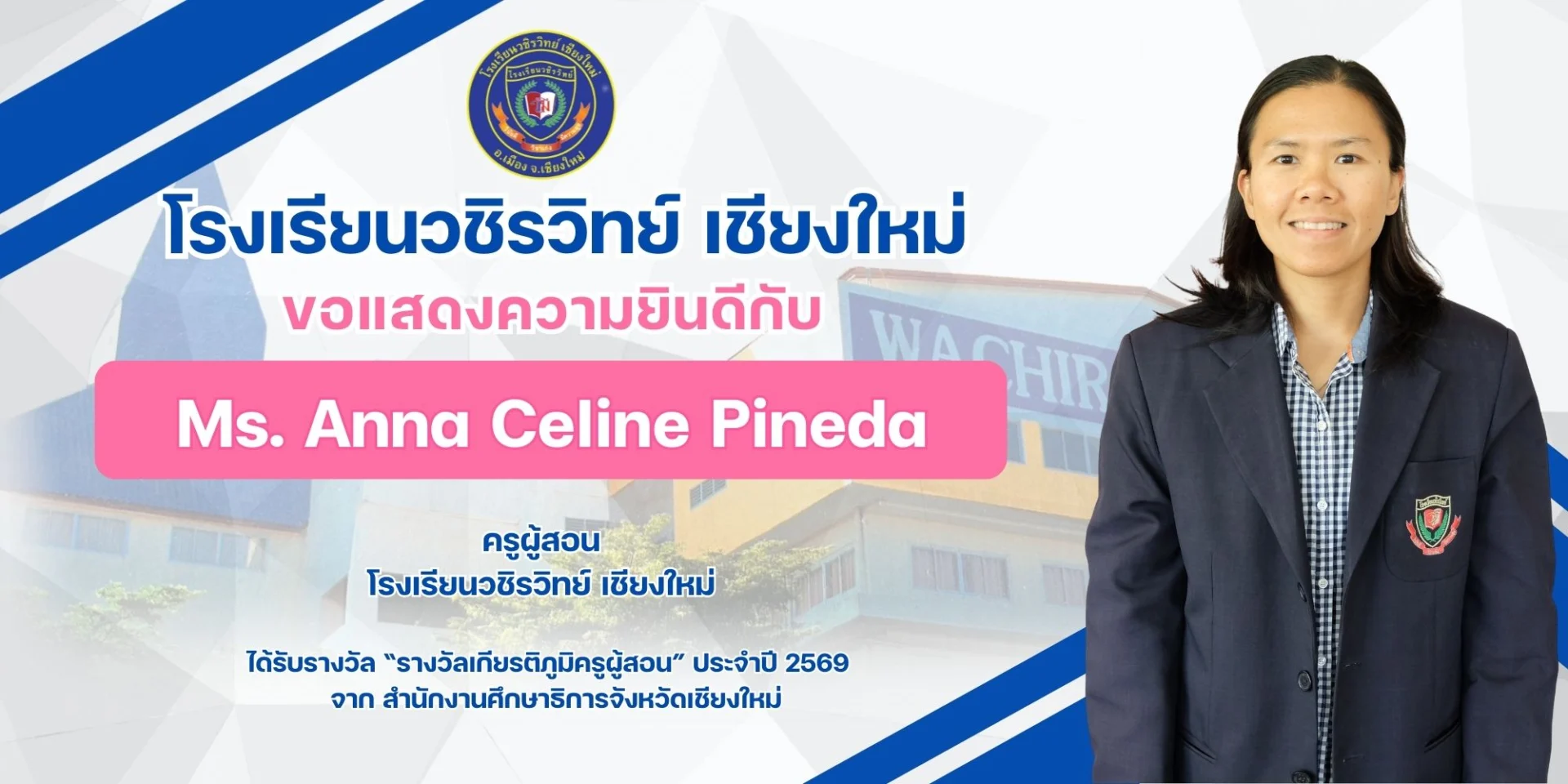 3.Ms. Anna Celine Pineda, a teacher at Wachirawit Chiang Mai School, received the “Distinguished Teaching Award” for the year 2026, presented by the Chiang Mai Provincial Education Office.