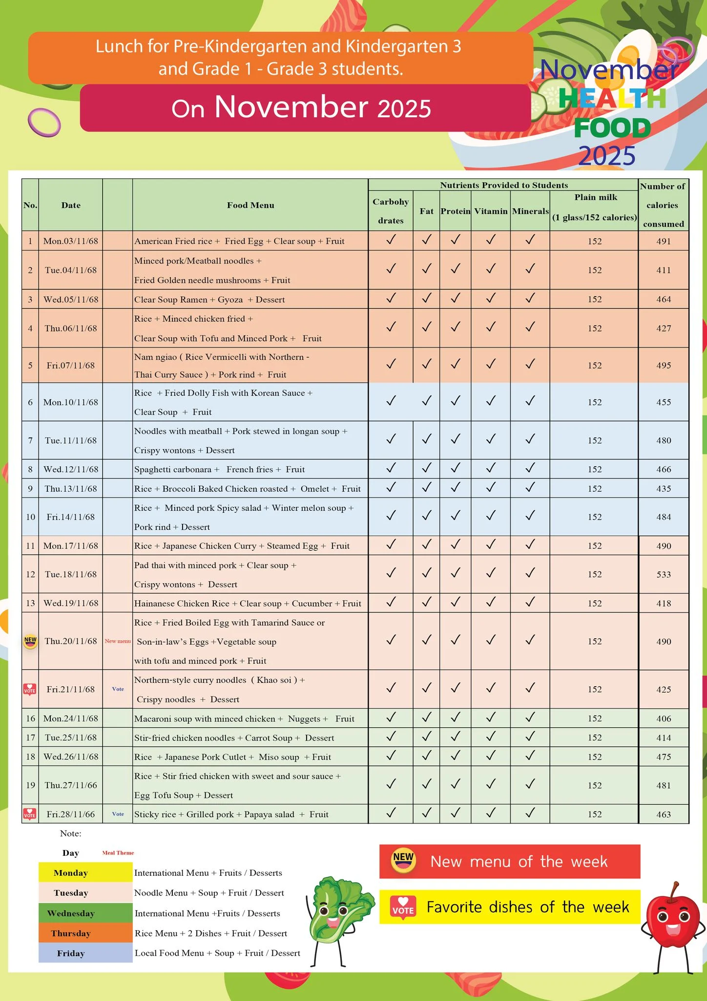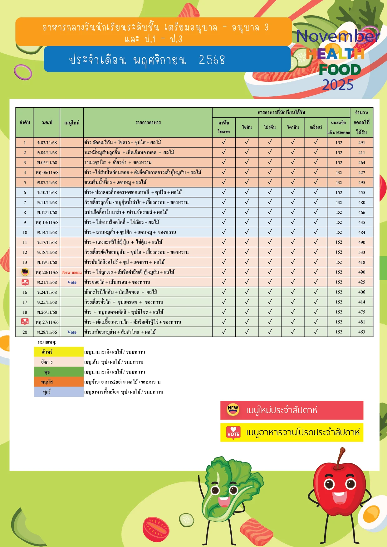 เมนูอาหารเดือน พฤศจิกายน 2568