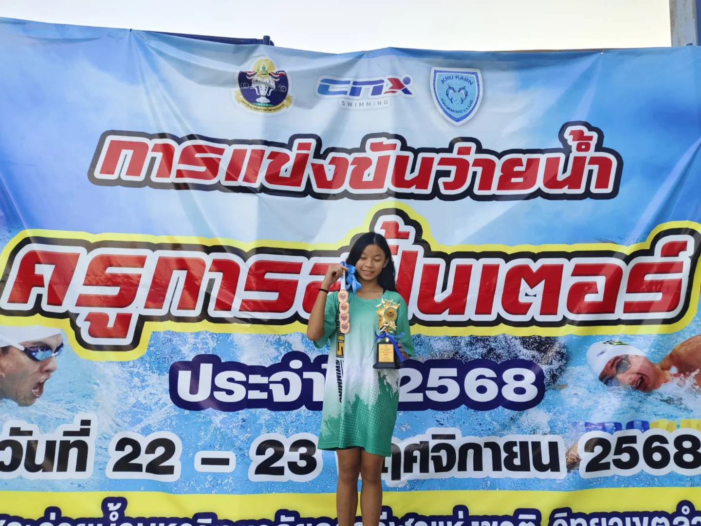 และได้ถ้วยรางวัลบุคคล รุ่น อายุ 14 ปีหญิง ลำดับที่ 7 เมื่อวันที่ 22 – 23 พฤศจิกายน 2568 ณ สระว่ายน้ำ โรงเรียนกีฬาจังหวัดลำปาง
