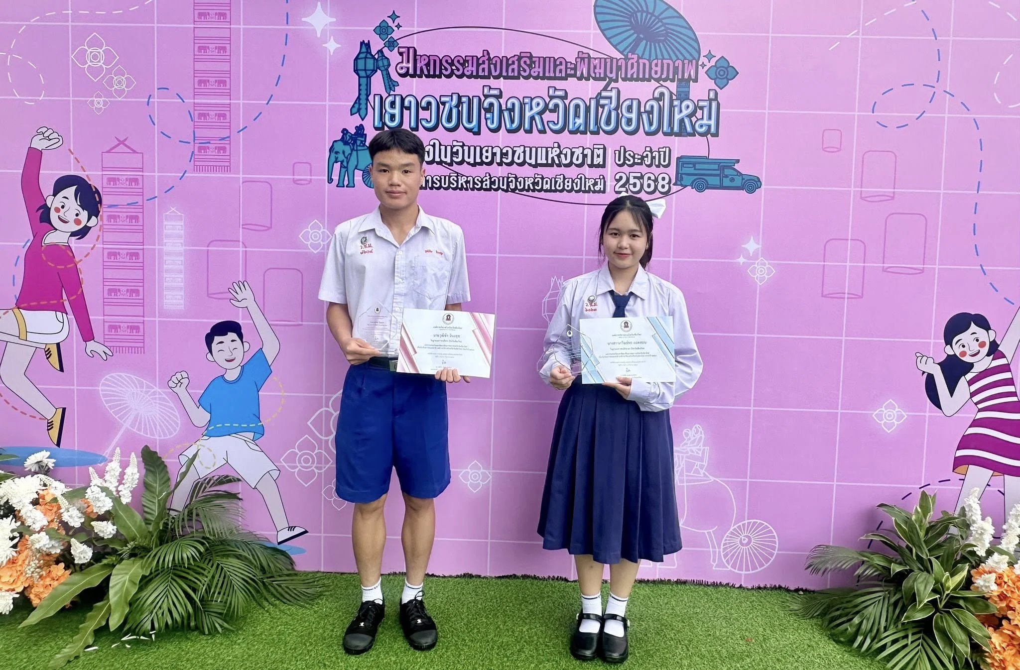 ขอแสดงความยินดีกับนายวุฒิชัย จินะสุข นักเรียนระดับชั้น ม.5 ที่ได้รับรางวัล เยาวชนดีเด่นของ องค์การบริหารส่วนจังหวัดเชียงใหม่ และนางสาวภวิษย์พร ยอดสอน นักเรียนระดับชั้น ม.5ที่ได้รับรางวัล เยาวชนจิตอาสาของ องค์การบริหารส่วนจังหวัดเชียงใหม่