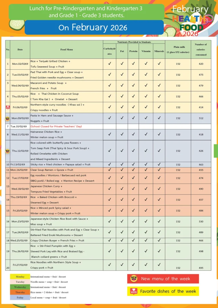 เมนูอาหารเดือนกุมภาพันธ์ 2569